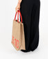 Shopper verticale in iuta con interno spalmato, manici in contrasto rosso.
