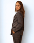 Dall'antica sartoria britannica, giacca ticket pocket sta a significare l'aggiunta di un terzo taschino situato sopra la tasca principale destra. Un dettaglio di stile che aggiunge un tocco di raffinatezza. La spalla ingentilita, resa quindi femminile montata su un capo di vestibilità maschile. In principe di galles sulle tonalità dei grigi con riga azzurra. Divertente la fodera in contrasto celeste.