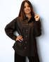 Camicia oversized in ecopelle. Chiusura con automatici argento, presenta due tasche a filetto a scomparsa. Perfetto da indossare anche aperta come alternativa a giacca o cardigan.